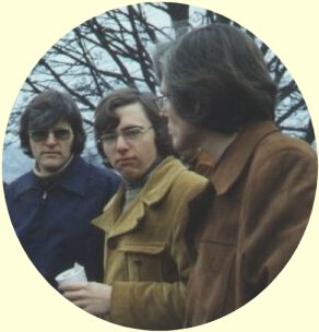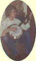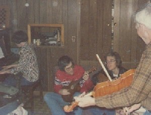 We think the pictures of Mick Murray and left, of Mike, Mick Murray and Jim, were taken about 1973. The group photo has faded quite a bit. We were probably making Dad play Kingston Trio songs. Mike took up guitar in 1962, after having a miserable time with the tenor banjo. He picked up the five string banjo in 1987, at the urging of Jim Bicknell, and it's been downhill ever since. He's taken workshops from (or at least, watched slack jawed) A.C. Overton, Will Keys, Clyde Troxell and Marvin Gaster. Can you guess, he plays mostly two-finger? |